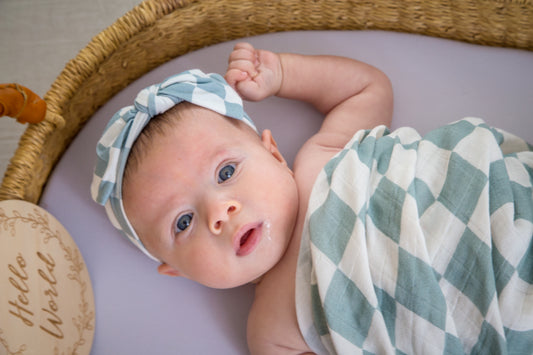 Organic Muslin Swaddle Set with Matching Beanie and Bow, Sage Checkered