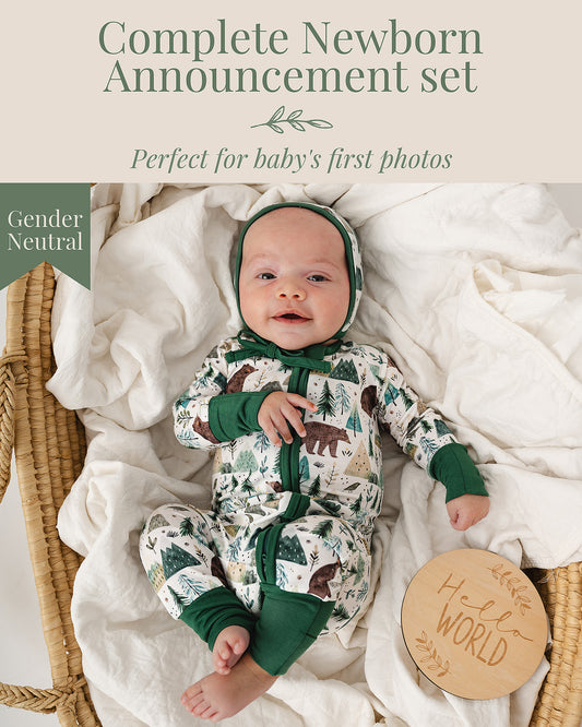 Miaoberry Newborn Bamboo Sleeper Bundle – Bear & Pine Tree Print