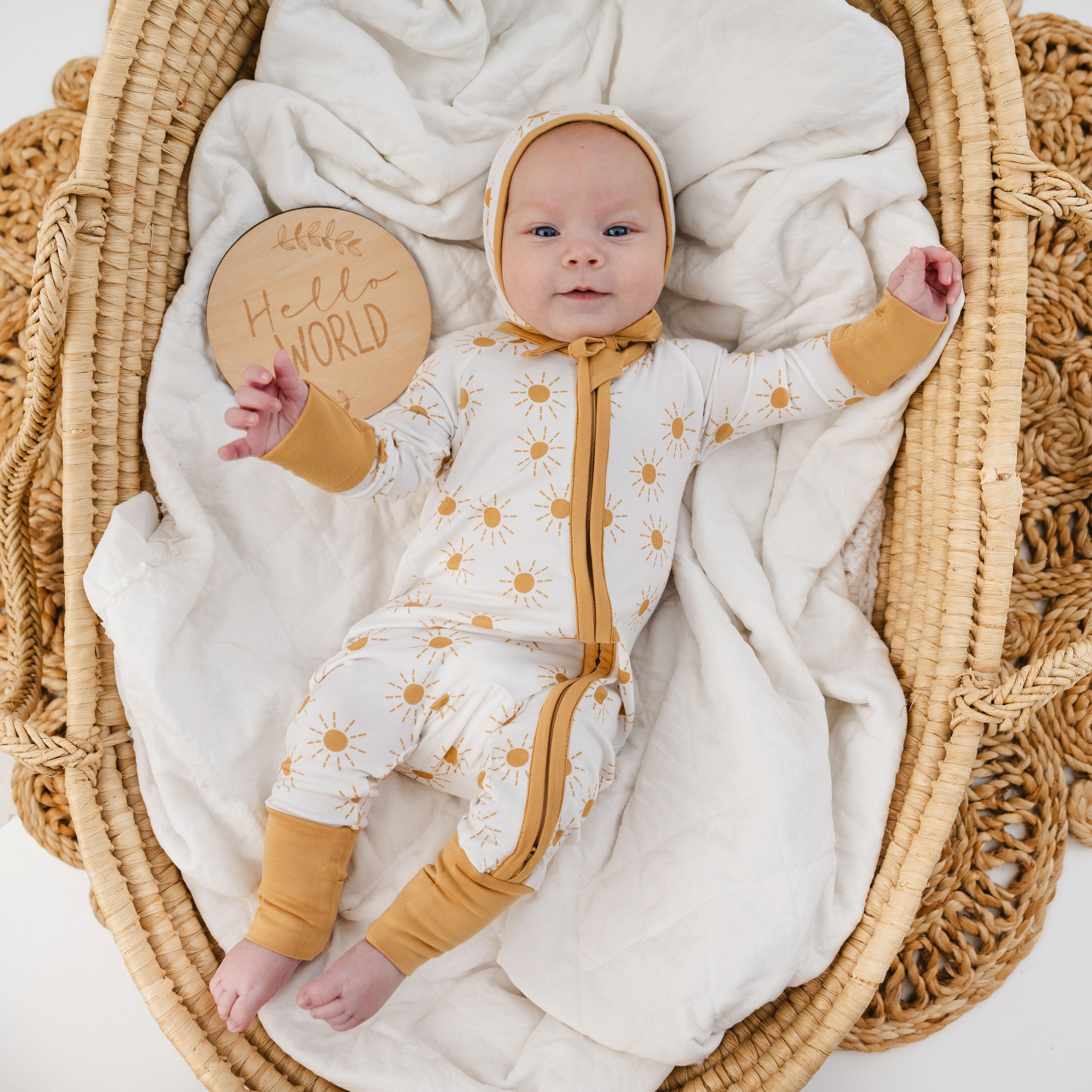 Organic Muslin Swaddle Set| Golden Sunrays in White