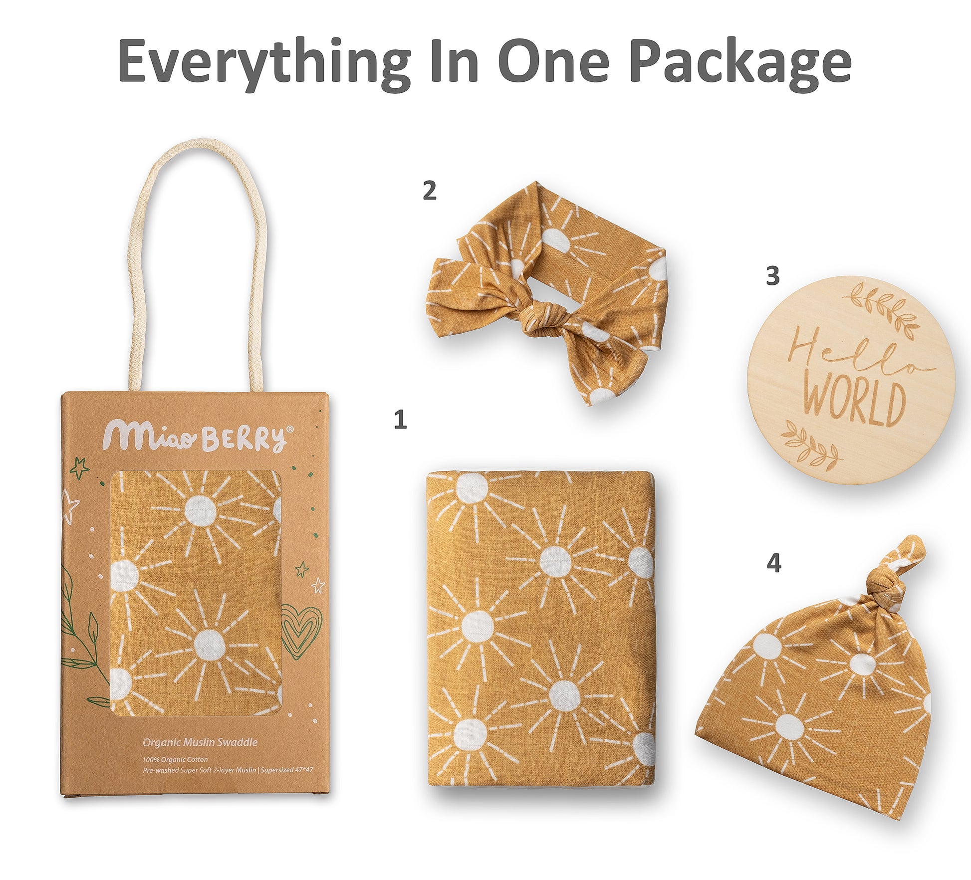 Details: *REAL GOTS CERTIFIED ORGANIC COTTON *Miaoberry Swaddle Blanket is Made with 100% GOTS Certified Organic Cotton Muslin and Proudly Authorized the Use of GOTS Green Label. It’s Made with The Finest Organic Cotton and Printed in Baby-Safe, Environment-Friendly Ink. Keep Your Baby Safe from All Toxic Chemicals Including Pesticides, Dyes, and Harmful Materials. *Get This Trendy Boho Design*Every Miaoberry Milestone Blanket is Uniquely Designed, Hand Illustrated by Our Designers.This Boho Sunrays Theme is Just Inspiring. Perfect for Everybody Loves sunshine, sun rays, and our mother nature… *** Attention Social Media Savvy Moms! Did I Mention It’s Packed in a Gifting-Ready Box, with a Set of FREE Arrival Cards with Baby’s Birth information and a Matching Hat/Beanie? This Newborn Picture Perfecting Set Can be Your Secret Weapon to Take the Most Perfect Photos of Your Little Darling, Make Your Little One the Rising Star on Social Media Since Day 1!*** Generously Sized, 47’’ X47’’, Square-Shaped, Perfect for SwaddlingWe Hope You Can Hand Wash in Cold Water but We Know It’s Unrealistic Too. So, Busy Moms, Just Make Sure to Use Gentle Cycle! and Air Dry. This Organic Cotton Muslin Milestone Blanket Becomes Softer and Softer with Every Wash. Wash Before the First Use, to Loosen up the Fabric and Make the Blanket Soft and Comfort for Your Little One.Let’s Be Friends!